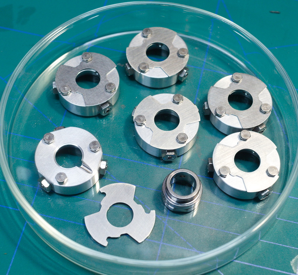 Abdeckungen, Frästeile gefertigt aus PEEK | Ventilschrauben, gefertigt aus Titan, Torx Antrieb TX8, Gewinde M4x0,35 | Gehäuse für Kollimatoroptiken, gefertigt aus rostfreiem Stahl 1.4305 |
